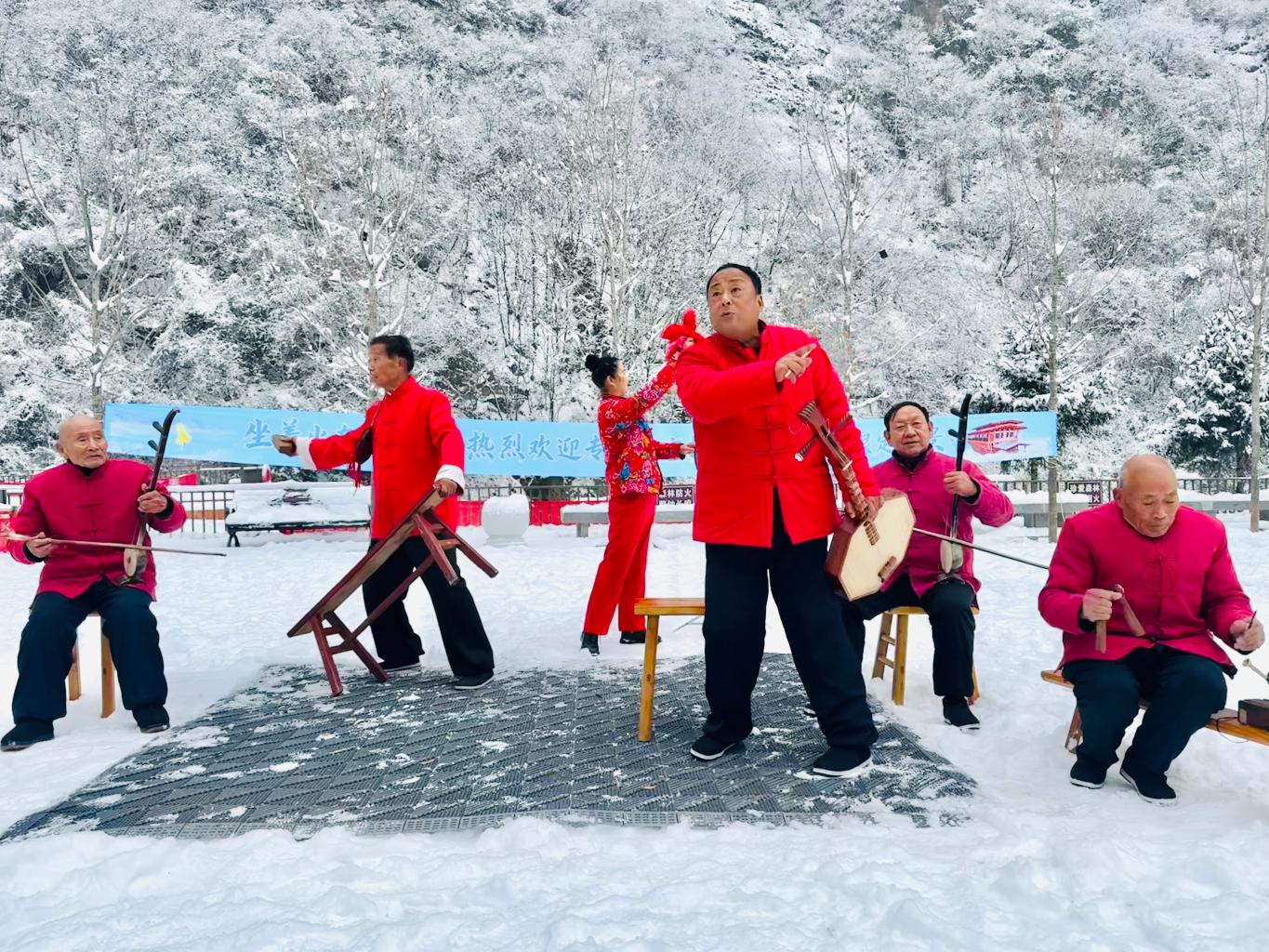 元旦的少华山,白雪、青松、笑声、掌声与古老的唱腔、灵动的皮影交织在一起,构成了一幅冬游盛景。这场以创新融合为笔绘就的文旅新篇章,为游客带来了别开生面的新年体验。(图片、视频均由华州融媒提供)