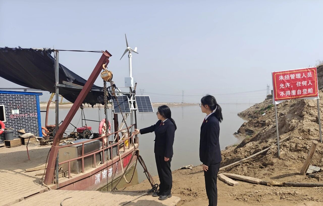 此外,结合渭河沿岸实际,检察干警对渭河渡口及周边区域开展实地巡查,重点查看渡口运营秩序、船舶停靠、安全设施配备、水域环境及日常管理情况,细致排查渡口运营、轮渡出行、水上交通等方面存在的风险隐患,同步开展安全提醒与法治宣传。通过实地排查与普法宣传同步发力,强化水生态环境保护、保障群众水上出行安全,以检察监督筑牢水域生态安全与群众出行安全双重防线。